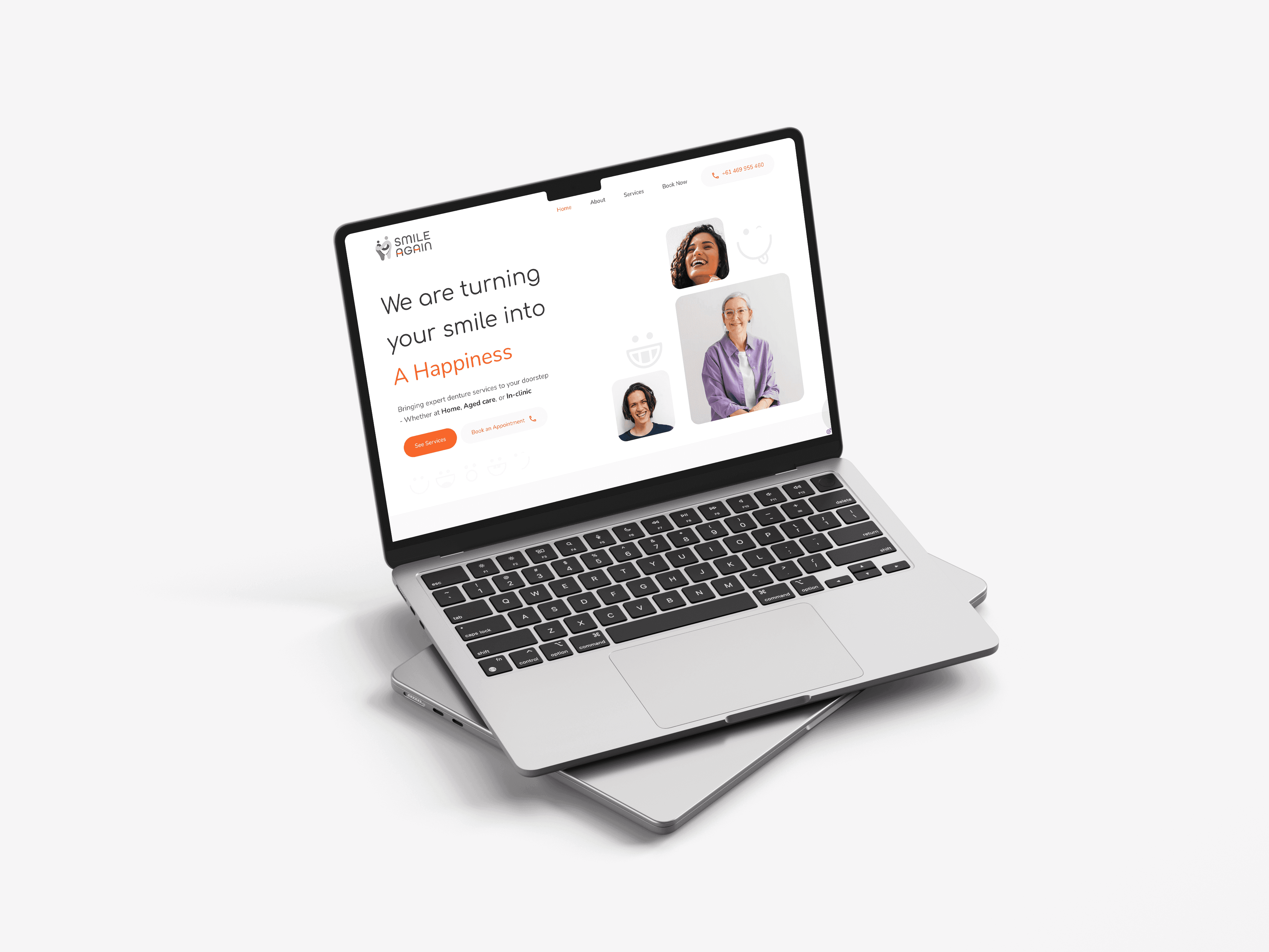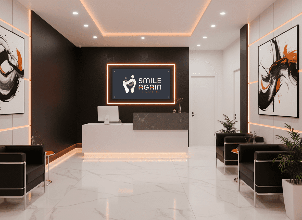 During the design process, the client mentioned that the clinic’s interiors were styled in black and white, and she wanted the brand to reflect that same aesthetic. While the idea made sense for consistency, I felt that pure black and white might appear too stark for a brand built on warmth and compassion. So, I proposed using soft shades of grey instead — a palette that maintains the clean, modern look but adds a sense of calm and comfort. To bring in a touch of emotion and vitality, I introduced a warm orange accent that symbolizes care, energy, and optimism. Together, these choices created a balanced visual story — one that feels professional yet personal, much like Smile Again itself.